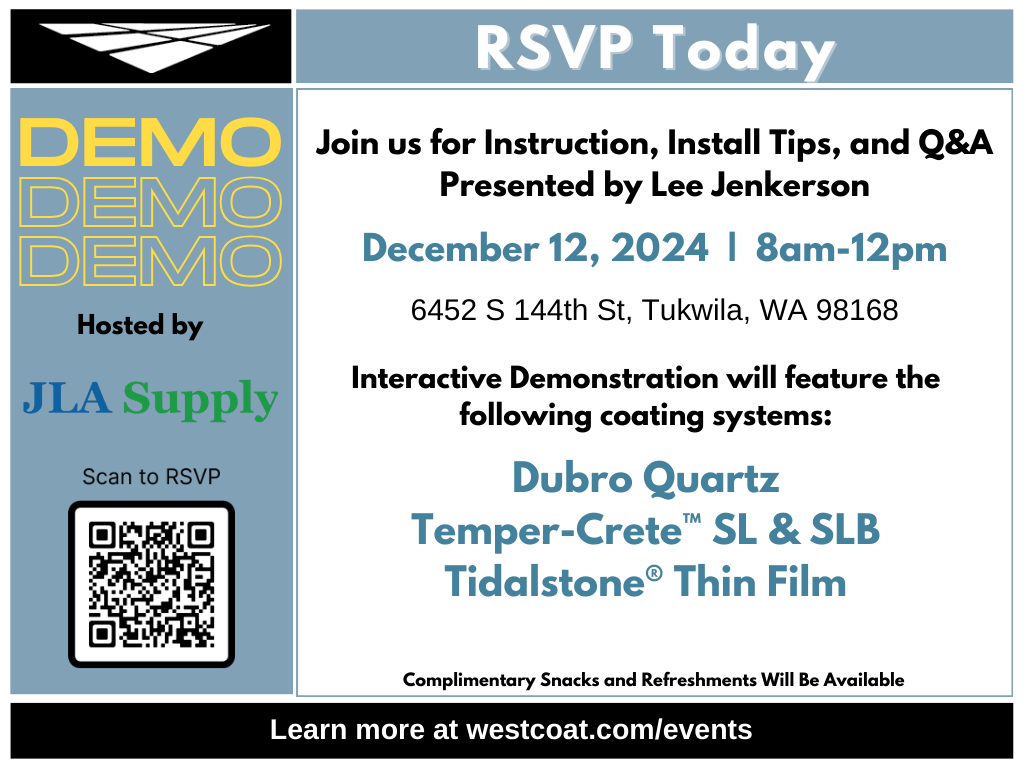 Learn cutting-edge epoxy installation techniques and elevate your projects with expert advice from industry leaders. See how Westcoat’s innovative coatings can save you time and improve durability in your next job. Enjoy complimentary refreshments while networking with top flooring professionals and learning about the latest epoxy technology!