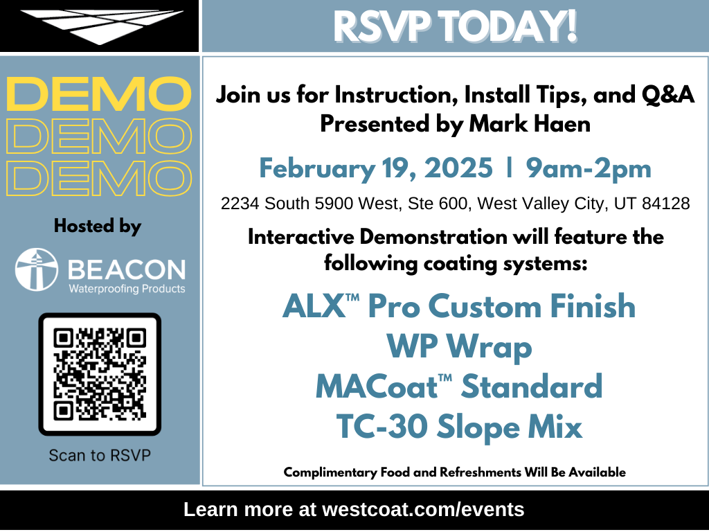 Don’t Miss Our Free Waterproofing Demo Event in West Valley City! Learn cutting-edge waterproofing installation techniques and elevate your projects with expert advice from industry leaders. See how Westcoat’s innovative coatings can save you time and improve durability in your next job. Enjoy complimentary refreshments while networking with top flooring professionals and learning about the […]