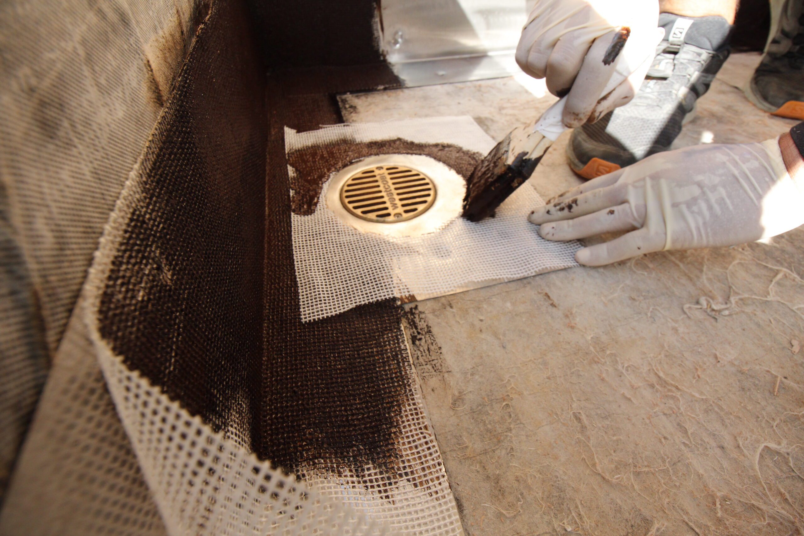The WP-35 is installed after the sheet membrane is in place. Then the WP-25 Metal Lath is laid over the drain area, and our TC-1 Basecoat Cement is applied with WP-81 Cement Modifier. A 2” clearance is left around the drain cap to maintain proper slope and access.