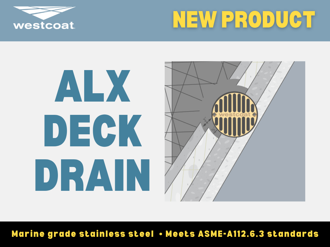 This drain offers a premium solution for multi-family buildings, commercial balconies, rooftop decks, and any elevated surface using Westcoat’s ALX or ALX Pro systems.
