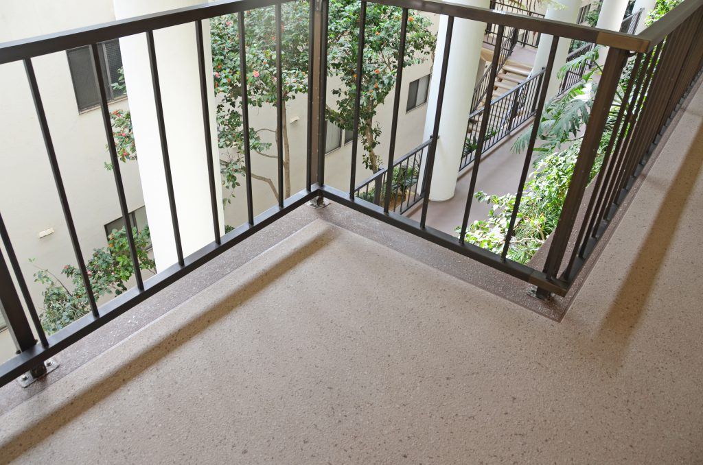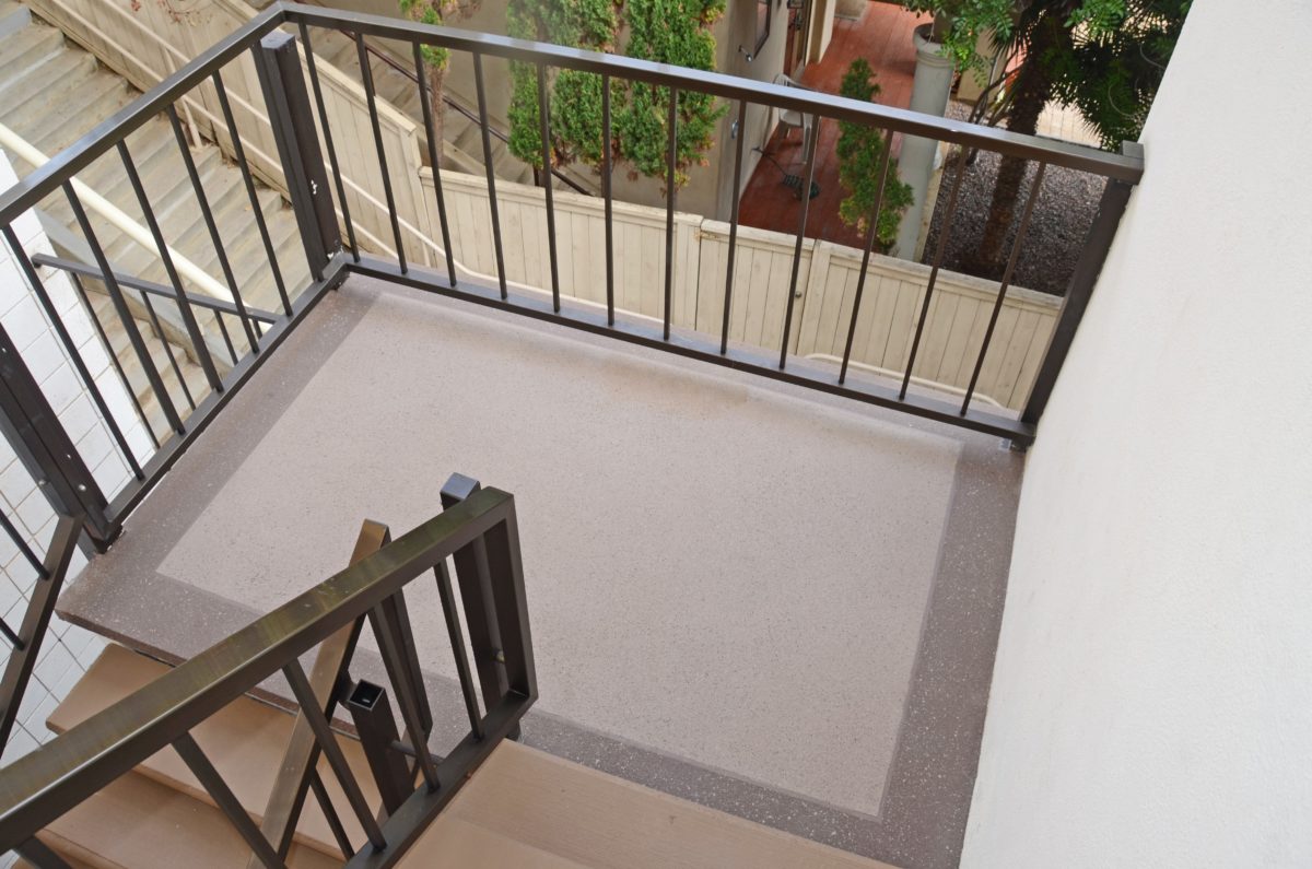 Fast forward five years and Laguna Royale owner wanted to update all walkways and again they called on Westcoat trusting that we would get the job done right. Empire Waterproofing installed our Texture-Crete system but this time with a custom finish. The look was achieved by spraying TC-2 Smooth Texture Cement in several specially tinted colors and creating an orange peel textured finish. The final speckled look is reminiscent of the sand on the beach below.
