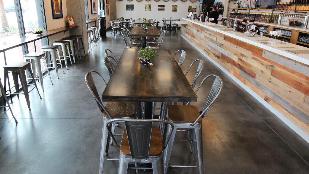 Orfila needed something to protect the concrete in their new tasting room and they were referred by a neighboring restaurant where we did a similar Grind and Seal floor. The floor would experience not only food and wine spills but the potential for pet clean-up as well. After thorough discussion with the owner and general contractor, a Grind and Seal system was chosen to complete the look of the modern yet rustic space.