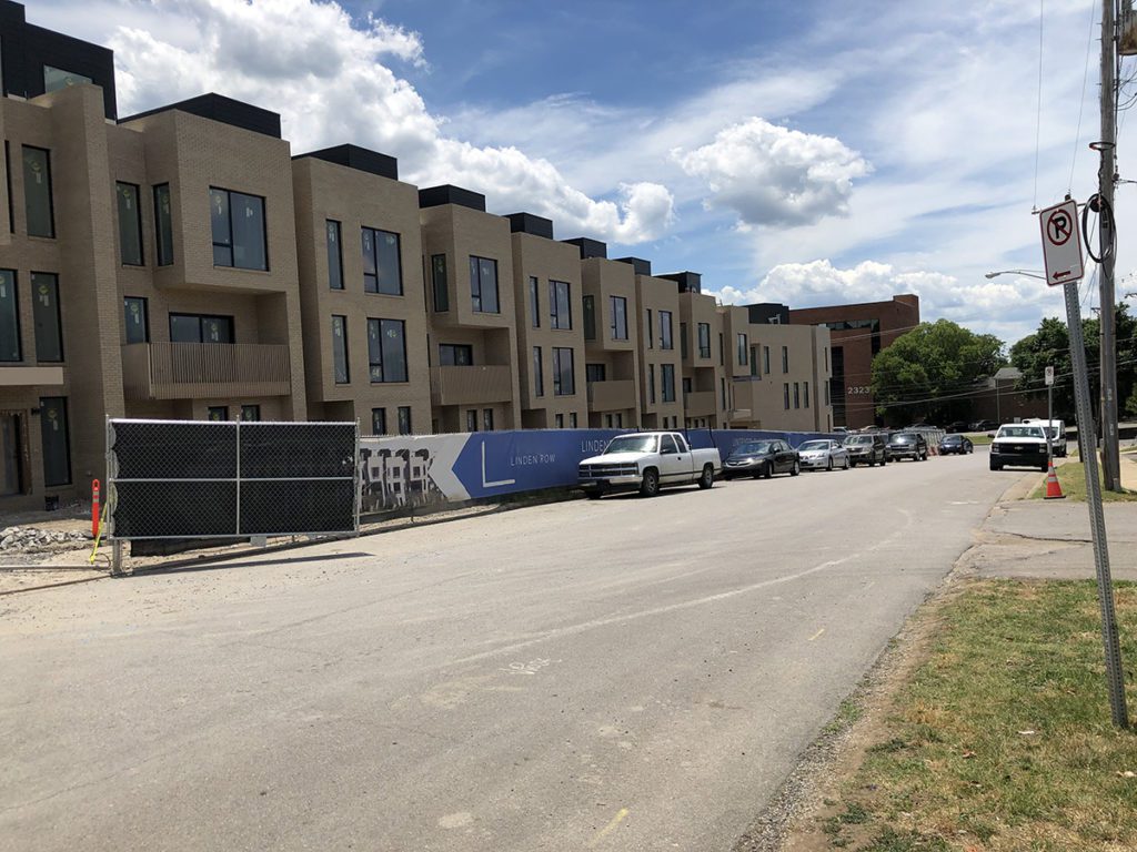 Designed by The Bradley Projects, co-developed by Bradley Development Group, and constructed by Certified Construction Services, Linden Row’s 38 luxury row homes are located in Green Hills. Phase 1, consisting of 17 units, completed construction in December 2020, and Phase two of the project began late spring 2022, for a total project value of $42 million.