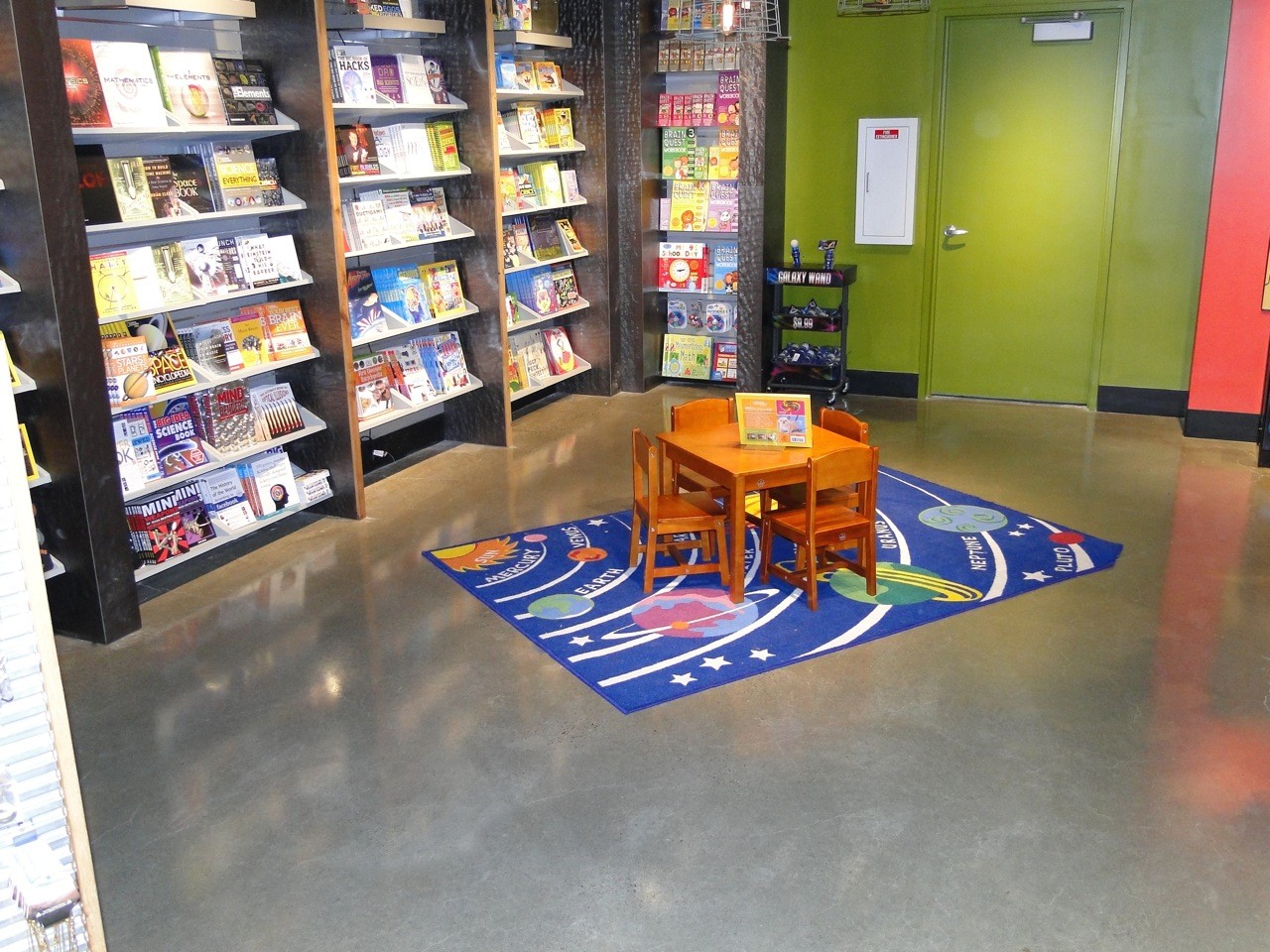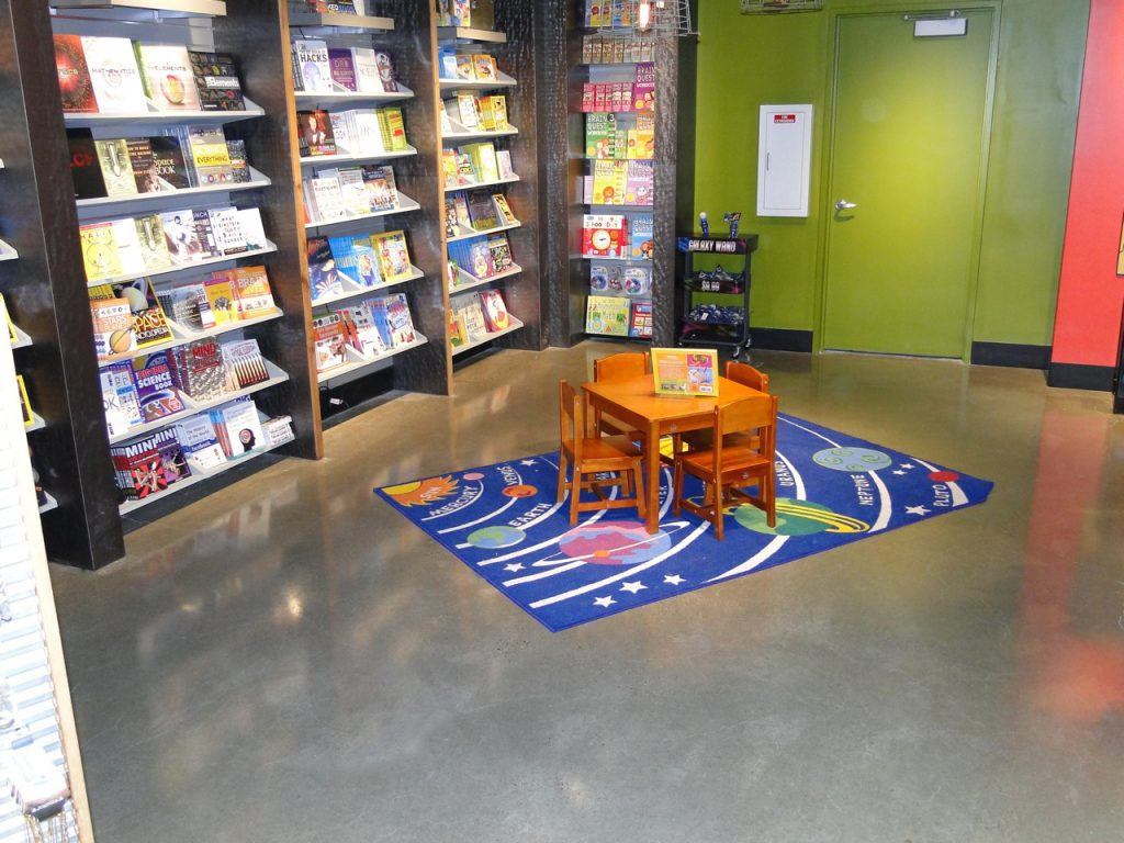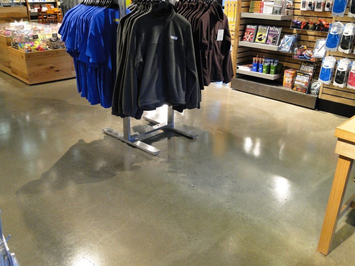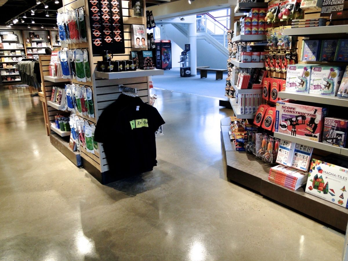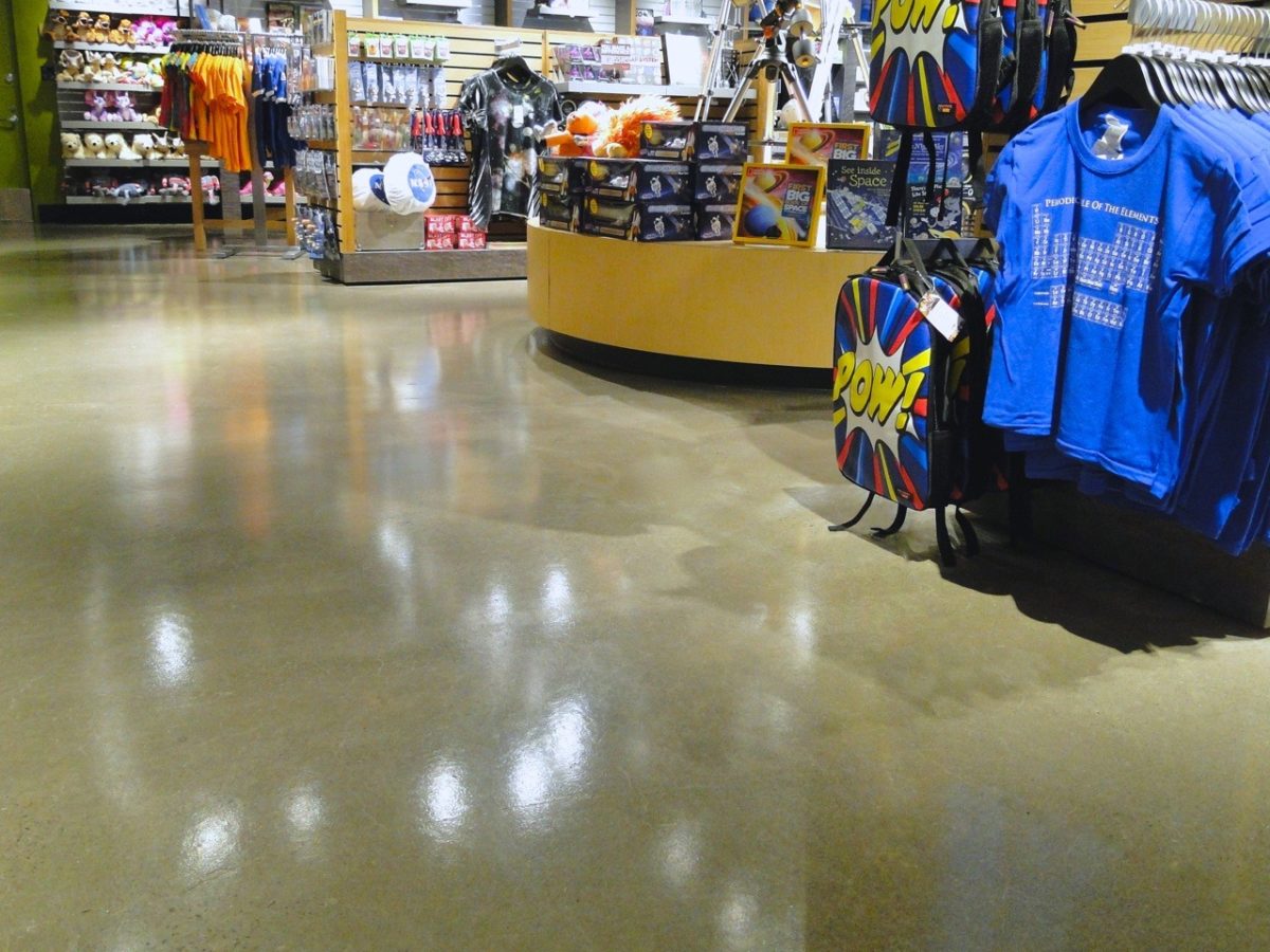 As part of a complete renovation, the gift shop at the Oregon Museum of Science and Industry needed a cost effective neutral floor with good reflective properties to highlight the shop’s merchandise. Jeff Bach, owner of Bach Custom Coatings of Oregon City, Oregon recommended a grind and seal option for the existing concrete slab.