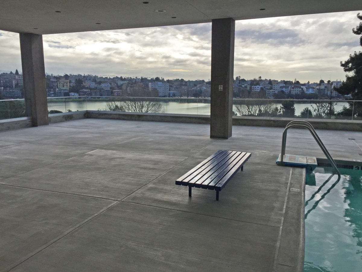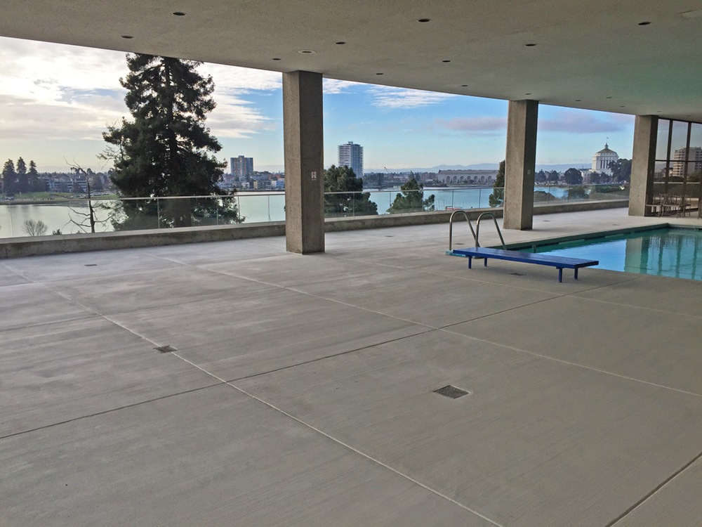 This apartment building turned condos sits towering over Oakland’s Lake Merritt and boasts gorgeous views of the mixed urban and natural environment. The sixth floor concrete pool deck, which sits above living space, was having issues with leaks. Not knowing exactly what the solution would be, the HOA turned to their construction partner, Urban Waterproofing, for some insight on what the next step should be.