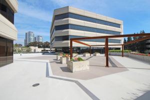 MACoat was installed on this high traffic concrete area with a sand broadcast for slip resistance. MACoat is a fiberlath reinforced waterproofing system used mainly for concrete walking decks and is ideal for areas with heavy foot traffic like this commercial area.