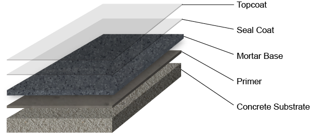 Quartz broadcast options (shown here) add decorative texture while maintaining a practical, wear-resistant finish, underfoot safety, and installation versatility indoors.