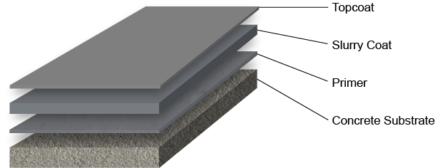 Epoxy Slurry is USDA and FDA compliant and can withstand daily cleaning and sanitizing without degrading the coating system. The topcoat is available in several opaque colors including Occupational Safety and Health Administration (OSHA) safety spectrum color availabilities.