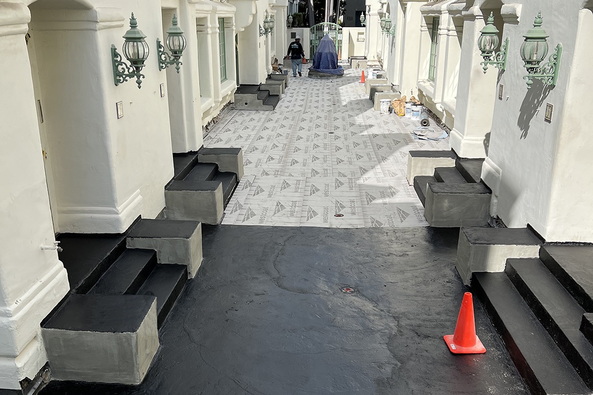 MACoat™ Waterproofing Underlayment System is a waterproof reinforced deck system installed with a series of two separate waterproof applications.